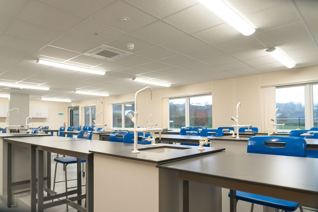• Sustainability Features – McAvoy buildings are designed to minimise impact on the environment at every stage, with low running costs, ease of remodelling and inherent recyclability. The classroom facility had air sourced heat pumps, Solar Panels fitted to the roof area and Rainwater harvesting using underground water storage tanks.