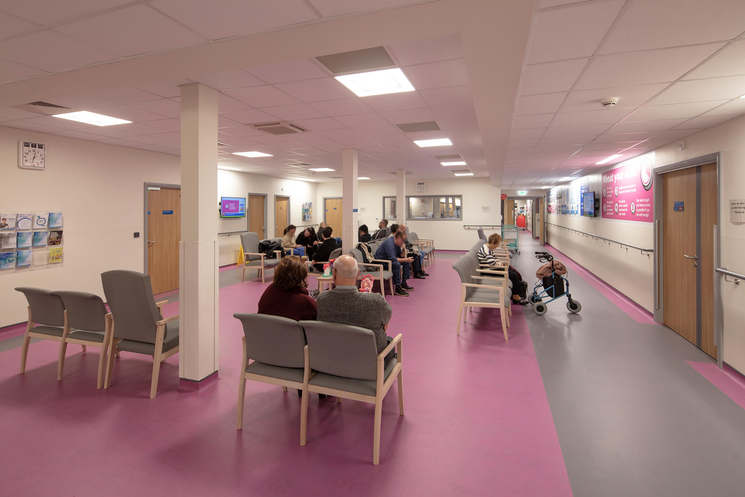 The ambulatory care unit provides medical, surgical and gynaecology care in a relaxed and comfortable environment. It also accommodates a fracture clinic. This allows up to 120 patients to be treated the same day across four specialisms, without the need for hospital admission. This is helping to de-congest the emergency department, allowing patients to be seen by the most appropriate clinician earlier and offering an enhanced service for the local community.